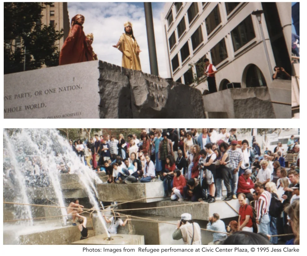 Jess Clarke/ Reimagine! will organize a creative laboratory for performance pieces integrating dance and movement with storytelling and Theater of the Oppressed, dealing with connection and separation of kindred peoples: Latino migrants with families across borders (Karina Muñiz), African Americans in a new diaspora (Jarrel Phillips), Japanese Sansei unwinding internment trauma (Angela Urata), and queer Catholics breaking with Irish patriarchy (Jess Clarke). Jiwon Chung will facilitate the open workshops and rehearsals using techniques from Theater of the Oppressed and Playback Theater. The public will be invited to the open rehearsals and to the final performance for this series, which we are callingCollaborative Liberation Arts Workshop Series (CLAWS).