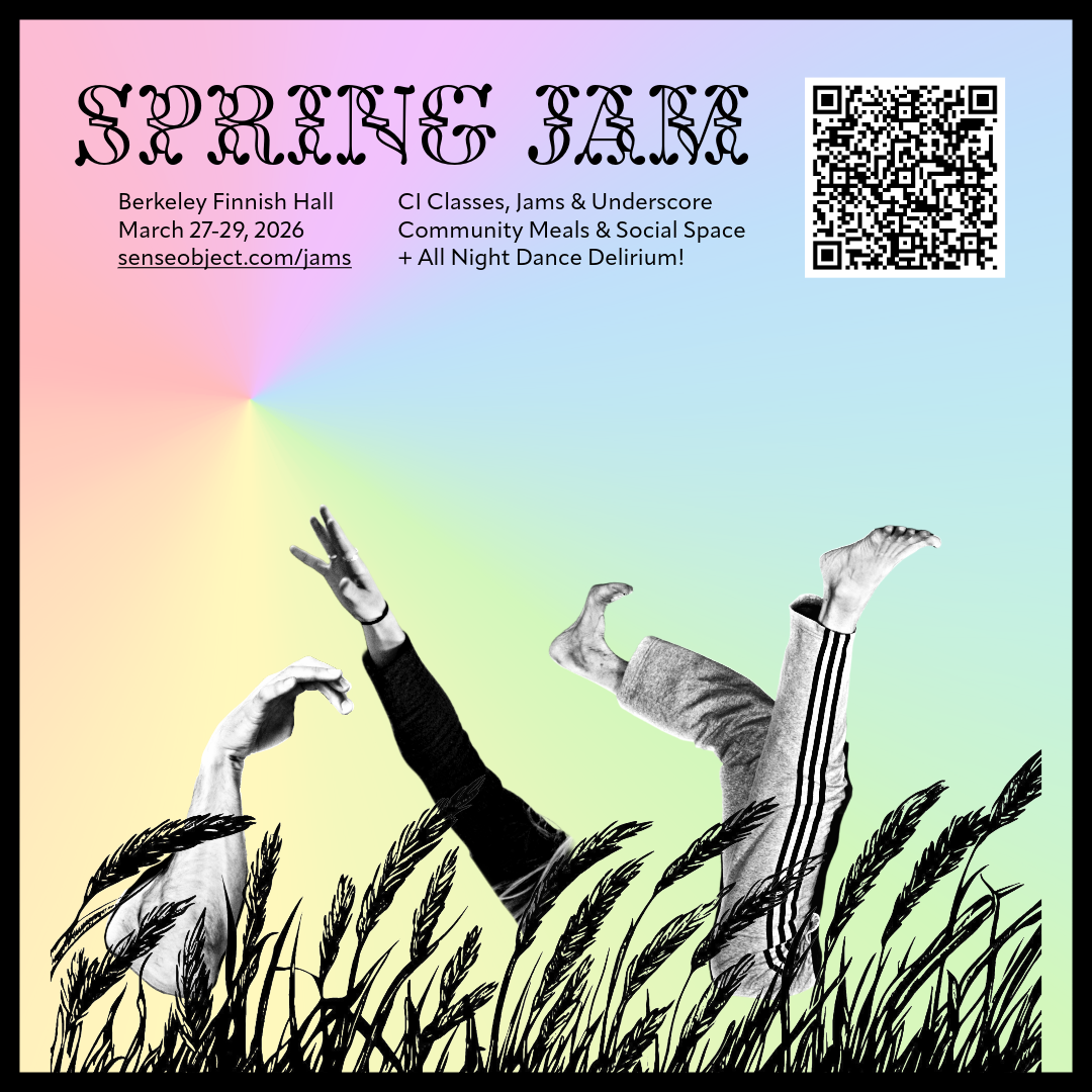 Sense Object is invested in creating containers for focused Contact Improvisation (CI) practice that feel safe, welcoming, and have clearly stated intentions, while also calling in the experimental, performative, and anarchic spirit of the work to bring it into focus as a radical community process. We host several weekly CI events, weekend workshops and community jams, as well as an annual summer festival, the West Coast Contact Improvisation JAM.